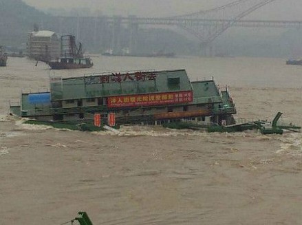 重慶海事局的消息稱,受昨日嘉陵江流域強降暴雨影響,嘉陵江重慶段水位24小時內陡漲10.77米;躉船因洪峰沖擊發生斷纜漂流翻覆。