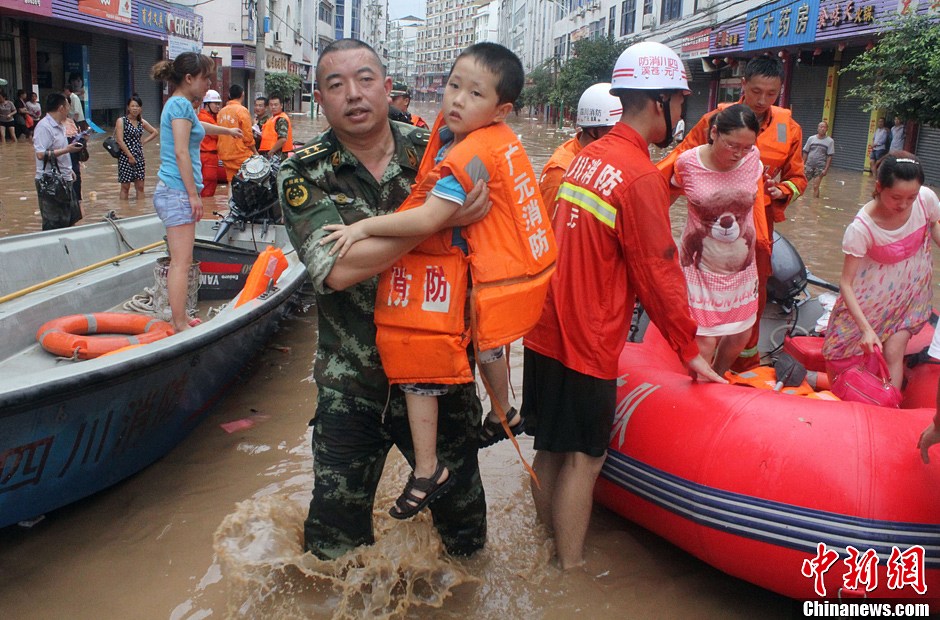 暴雨和特大洪水,導致該市旺蒼、蒼溪、劍閣等地部分民房進水被淹,蒼溪岐坪鎮被淹最深高達達5米,150余家商鋪被洪水淹沒。