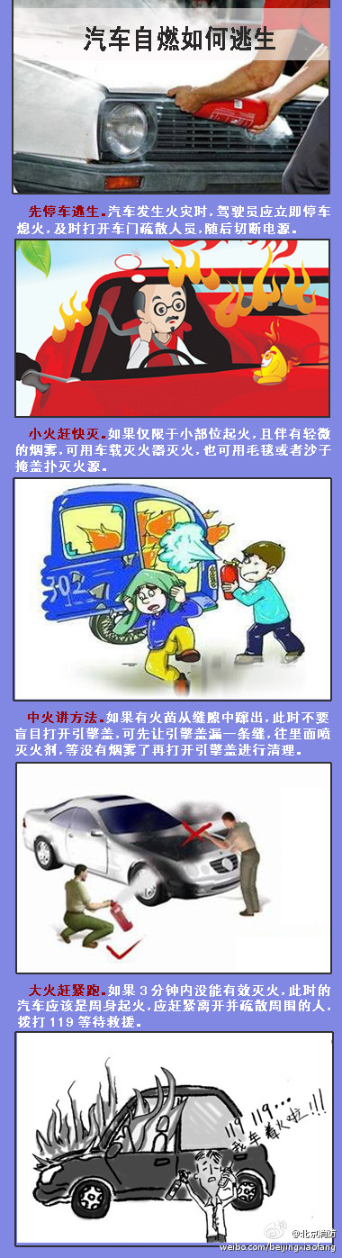 汽車一旦自燃,到底如何自救逃生?謹記下圖安全知識。