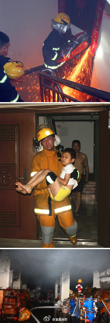 宜昌西陵區一倉庫凌晨大火 消防員深入救出一男孩
