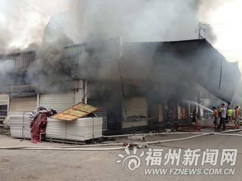 福州消防支隊(duì)調(diào)集了特勤大隊(duì)和臺(tái)江大隊(duì)8輛消防車(chē),有三部停靠在工業(yè)路上,通過(guò)接續(xù)幾百米長(zhǎng)的水帶供水,另外五部停在距離火場(chǎng)較近的黎明建材市場(chǎng)里面的過(guò)道上。