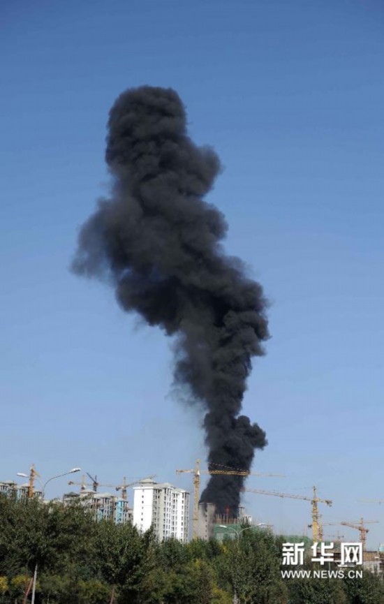 9月29日,呼和浩特市南二環路附近一處在建高樓濃煙滾滾。