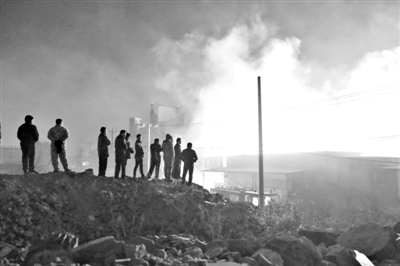 接警后,38輛消防車趕赴現(xiàn)場撲救。近22時,消防人員將大火撲滅。鞋城倉庫上空,彌漫著濃濃黑煙,能聞到強(qiáng)烈刺激味道。截至23時50分,部分消防人員仍在朝濃煙噴射。