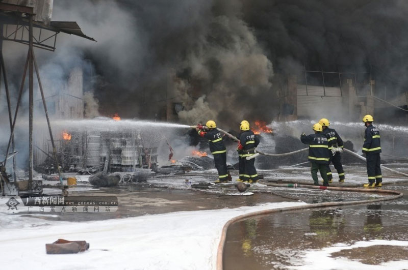 南寧祥安貨運停車場汽修店大火百名消防撲救