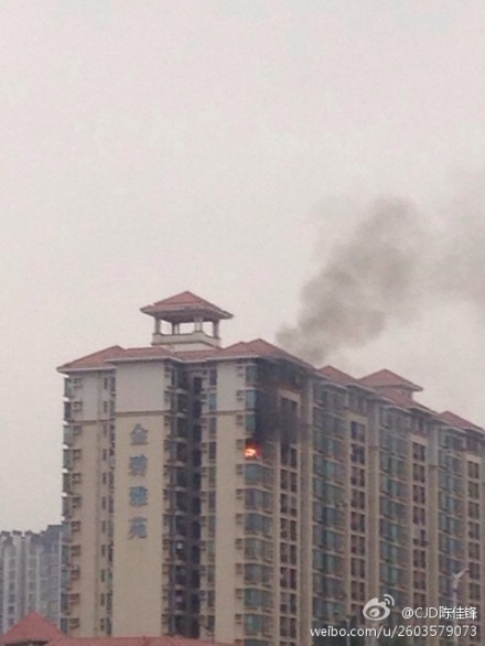 網友消息:今天下午,廣州金碧雅苑高樓發生火災,從圖片上可以看到明火已蔓延至陽臺。