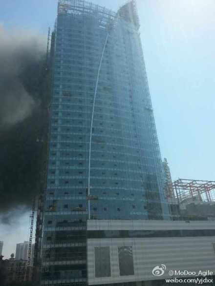 消息:今天上午,武漢光谷融眾國際頂樓發生火災。