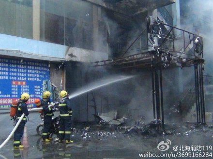 昨天,海城區四川路新浪潮KTV車棚著火,蔓延迅速。