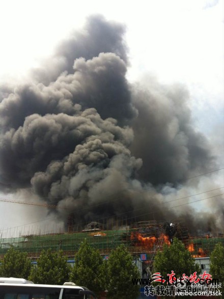 今天中午11點半左右,泰安市岱岳區(qū)金牛山路與泰東路交匯處泰山國際采購中心在建工地發(fā)生火災。