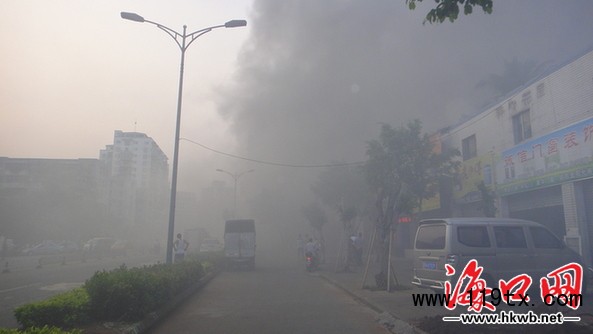 核心提示:    今天早上7點左右,海口市南沙路一商鋪發生火災。  大火與濃煙不斷從商鋪內冒出,濃霧彌漫在該路段上。  接警后,消