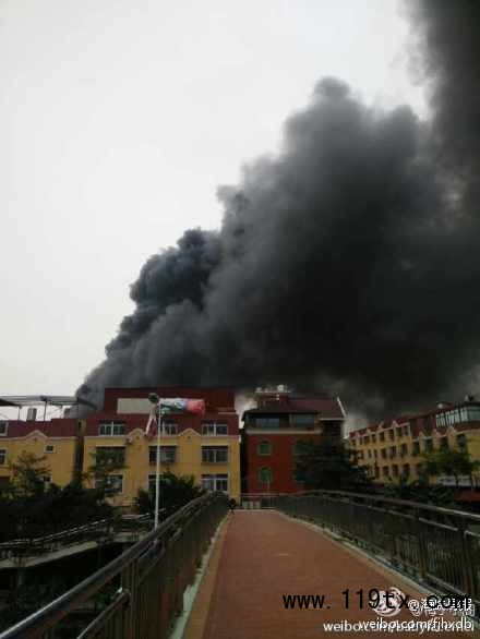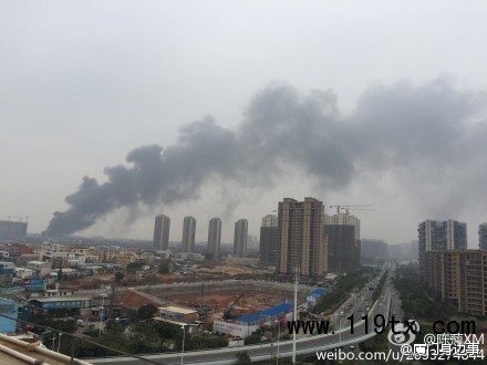 現場黑煙滾滾,火勢迅猛。該工廠里多為大型可燃物資,蔓延迅速。