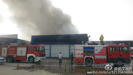 武漢消防作戰指揮中心迅速調派常青、特一、古田、吳家山四個消防中隊15輛消防車、70余名官兵到場處置。