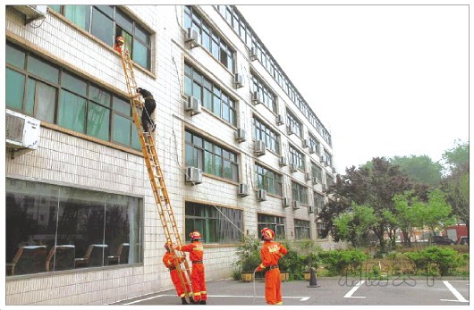上午8時30分,演練正式開始。演練假設酒店四樓某房間,因住宿人員違規吸煙,不慎引發火災,兩名人員被困,多人需要緊急疏散。酒店消防值班人員立即報警,并迅速組織單位員工進行撲救初起火災和疏散人員。消防支隊指揮中心接警后根據火災情況和等級力量調派方案,按照“一次性調足力量,快速救人滅火”的作戰要求,迅速調集全市三個執勤中隊5輛消防水罐車、2輛搶險救援車、1輛高噴消防車、1輛登高平臺消防車,50余名消防官兵趕赴現場施救,全勤指揮部人員遂行出動趕赴現場。3個參戰中隊按照滅火方案,分別從酒店人員自救、接警出動、力量調集、火情偵察、戰斗編成、疏散排煙、人員搜救、滅火總攻、應變行動等方面進行了重點演練。演練環節層層推進、銜接緊密,參演人員動作嫻熟,配合默契,演練現場有條不紊、緊張有序,經過20分鐘的奮力救援,被困員工被成功救出,“大火”被成功撲滅,演練活動獲得圓滿成功。