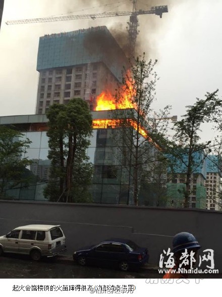 昨天傍晚,福州白馬路萬科廣場一期商業街的“聽川”會館頂樓發生火災。