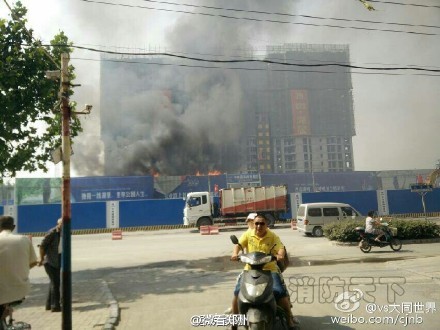 網友消息:今天上午,鄭州化工路瑞達路往西300米西西湖樓盤突發火災。