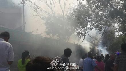 一連燃燒了幾家小吃店,現(xiàn)場濃煙滾滾。
