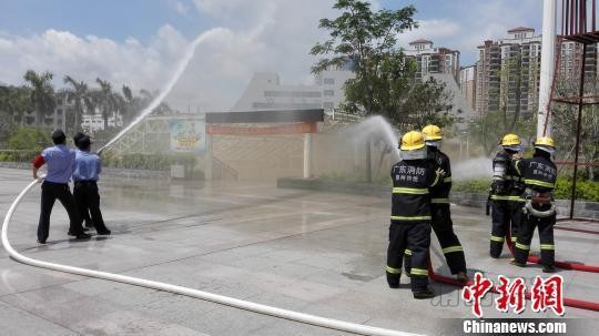 但為了提高消防意識,增強商戶的火災防范、自救能力和消防安全知識,以及提高管理公司處理突發事件和搶險救災能力,10日,消防部門專門在該批發城舉行了一場消防演習,模擬商城某商鋪因使用大功率用電著火,工作人員模擬撥打“119”火警電話報警,商城管理人員迅速啟動應急疏散商城內商戶和顧客到指定安全場所,惠州仲愷區消防大隊官兵迅速趕到現場,與批發城管理公司惠州三友公司的保安人員一起模擬向火警點噴水、滅火。