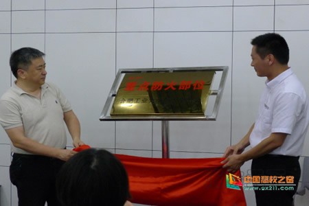儀式上,保衛辦公室副主任于長偉匯報了近期學校消防工作的開展情況,副秘書長陳鴻海宣讀了《合肥工業大學消防安全重點單位(部位)名單》,副校長吳玉程和物業服務中心主任王慶共同為消防安全重點單位(部位)學生公寓揭牌。