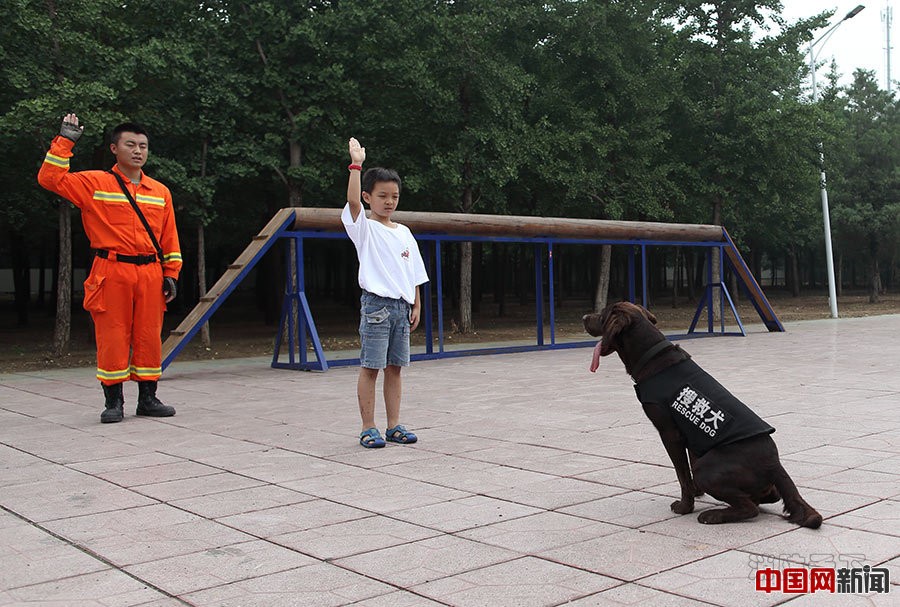 2015年7月19日,北京消防搜救犬訓(xùn)練基地,小市民體驗(yàn)搜救犬手勢(shì)訓(xùn)練。當(dāng)日,北京消防邀請(qǐng)市民參觀搜救犬訓(xùn)練基地,觀看搜救犬訓(xùn)練。北京市朝陽(yáng)區(qū)公安消防支隊(duì)搜救犬隊(duì)成立于2006年12月,目前擁有15名訓(xùn)導(dǎo)員,包括荷蘭牧羊犬、德國(guó)牧羊犬、比利時(shí)牧羊犬、史賓格犬、拉布拉多犬共5個(gè)品種的40條搜救犬。近年來(lái),搜救犬先后參加汶川地震、舟曲泥石流、周口店山體滑坡等各類救援任務(wù)50余次,成功搜救百余人。