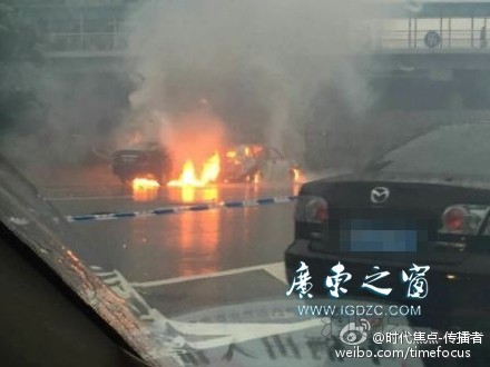 網友消息:今天早上七點左右,深圳梅林關兩私家車起火。