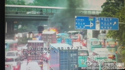 造成大面積交通堵塞,接警后,消防迅速趕往現場撲救。