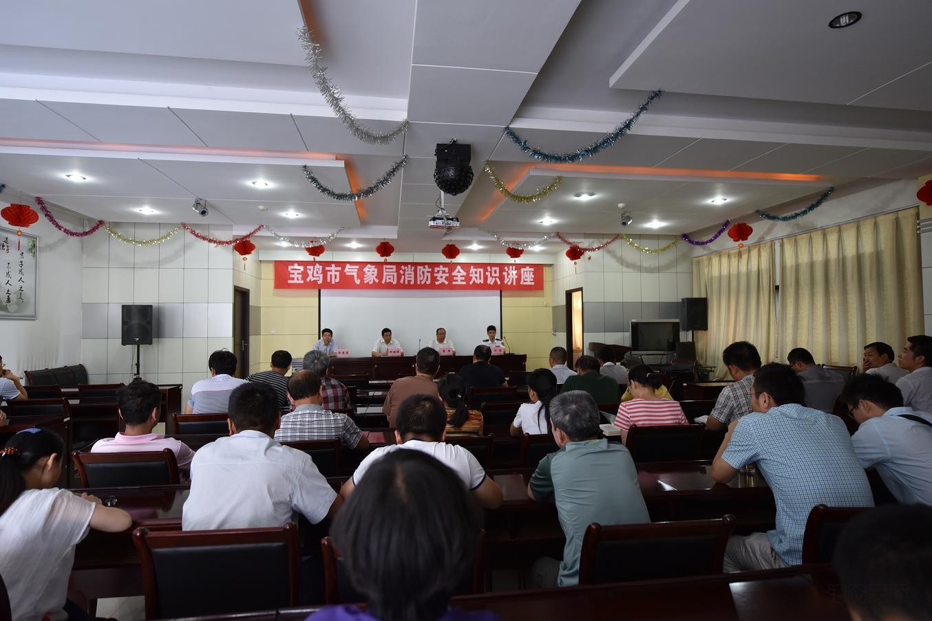 為了進一步貫徹落實全國、省、市安全生產專項工作會議精神,增強職工消防安全意識,提高職工對突發事件的應變能力。8月26日,寶雞市氣象局舉辦了消防安全知識講座和滅火應急演練,邀請了西安國安消防科教站教官,對全體干部職工進行了消防安全知識講座。