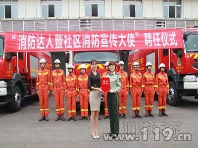 為積極響應今年的“11.9”宣傳日的社區消防主題,支隊將從最終選撥出的10名消防達人中,聘任4名消防達人作為社區消防宣傳大使,與消防官兵、志愿者一起走進社區、走進家庭,發動廣大群眾開展“查看一次滅火器、學習使用一次消火栓、帶家人夜間走一次疏散通道”為主要內容的“三個一”消防體驗活動,進而達到深入普及社區群眾的消防安全意識和逃生自救技能的目的。