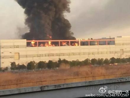 網友消息:今天早上7點半左右,淮安富士康集團公司著火。