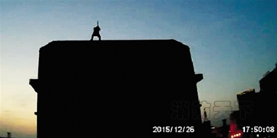 視屏截圖顯示,輕生男子在頂樓揮動鋼管
