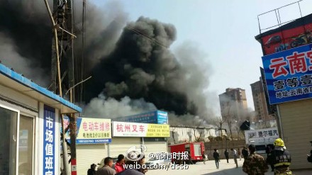 起火的是市場倉庫。已經有9輛消防車到現場。