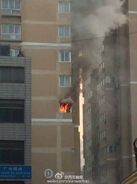 今天早上8點半左右,西安太白南路財政廳家屬院六樓起火。