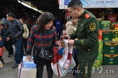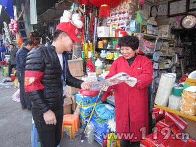 宣傳活動中,大隊宣傳人員首先結合近年來發(fā)生在批發(fā)市場的火災事故,向廣大商戶及群眾詳細分析了批發(fā)市場火災事故的嚴重危害性,提醒廣大商戶做好日常消防器材維護保養(yǎng)工作、個人應加強消防知識學習,熟練掌握逃生自救技能。隨后,宣傳人員通過通俗易懂的語言向市場消防管理人員詳細講解了冬春批發(fā)市場火災的主要原因、如何處置初起火災、如何疏散逃生等消防安全知識。在宣傳活動現(xiàn)場,大隊宣傳人員還現(xiàn)場進行了滅火器使用方法現(xiàn)場演示。