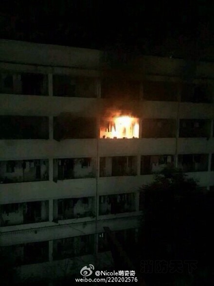 網友消息:昨天晚上9點半左右,南寧廣西民族大學本部一宿舍五樓起火。