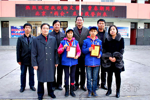 3月11日,來自甘肅平涼市黃家園小學的楊文靜、曹春潮在首都北京以平涼新華小記者的名義與全國各地新華小記者優秀代表采訪全國政協委員莫言、宋祖英、張國立、劉月寧、黃德寬、郭大成、趙東科、王小燕、秦和等十余名全國政協委員、全國人大代表。截止3月11日兩位小記者到校后,受到該校校長柳義明的高度贊揚,并組織2名新華小記者深入各班傳遞他們兩會采訪的所想所感。