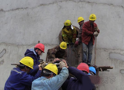 在罐底,消防官兵發(fā)現(xiàn)被困工人,渾身抽搐,毫無(wú)知覺,呼吸十分微弱。消防官兵立即用移動(dòng)供氣源注入新鮮空氣,同時(shí)將工人固定在多功能擔(dān)架上,然后由地面上繩索和安全板帶將擔(dān)架吊起后,從污水處理罐出水口抬出。經(jīng)過20多分鐘的緊張救援,被困工人被成功救出,隨后送往醫(yī)院救治。