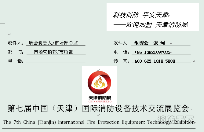 科技消防 平安天津 歡迎加盟 天津消防展會邀請函
