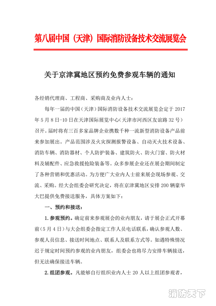 為方便廣大業內人士前來展會現場參觀、交流、采購。經大會組委會研究決定,將在京津冀地區安排200輛豪華大巴提供免費接送服務。參觀預約大會組委會VIP觀眾部韓月桂 女士15822909322,詳見通知。