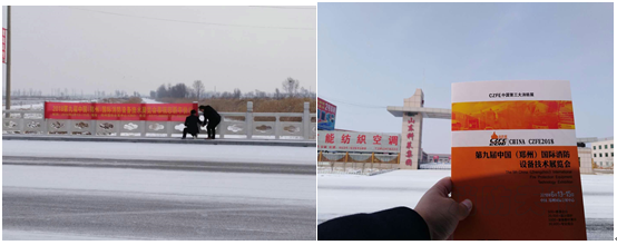 臨近春節放假前期,“2018第九屆中國(鄭州)國際消防設備技術展覽會恭祝您新年快樂”宣傳標語、展會請柬遍布德州武城工業園區大小街道;2天時間,拜訪客戶30多家,答謝禮物100多份,發放請柬1000多張,展會宣傳效果得到了展商及參觀觀眾的積極回應。