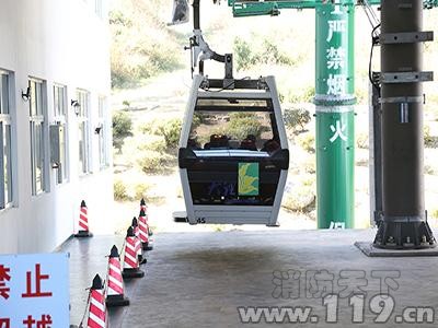 搭載被困人員和消防員的纜車慢慢停靠