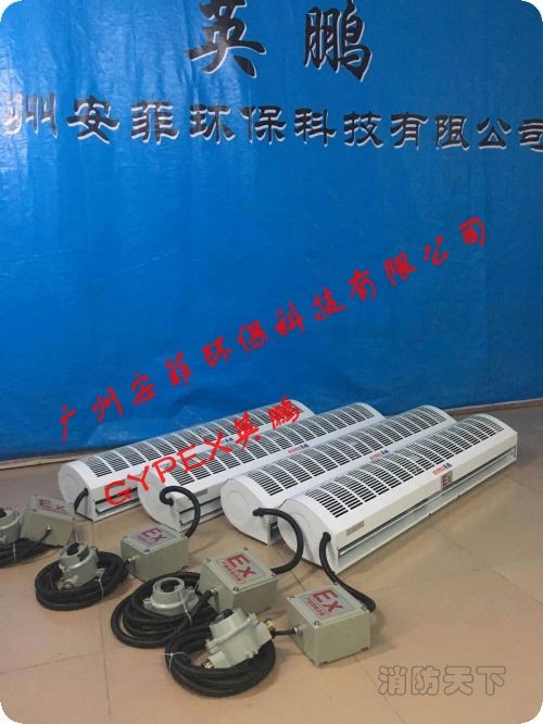 英鵬防爆風幕機是一面無形的門簾,亦稱風簾機,空氣幕,空氣門。可安裝在制冷,空調,防塵,隔熱的冷藏庫,手術室等門口上方,用該機器能把室內外的空氣隔開,使人員出入方便,又能防止室內外冷熱空氣交換,同時具有防塵,防污染,防蚊蠅之功效。與空調配套使用,效果顯著,更能延長空調的使用壽命,本公司防爆風幕機經過本公司技術人員嫻熟的防爆技術,經過特殊防爆的處理,使產品在使用中更加的安全,從而不會產生因線路故障而產生火花引起爆炸的危險。