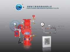 ZSFY型預(yù)作用裝置是將火災(zāi)探測報警技術(shù)和自動噴水滅火系統(tǒng)結(jié)合起來,對保護對象起雙重保護作用。在未發(fā)生火災(zāi)時該系統(tǒng)側(cè)管路內(nèi)充氣,故系統(tǒng)具有干式系統(tǒng)的特點,能滿足高溫和嚴(yán)寒條件下自動噴水滅火的需要。
