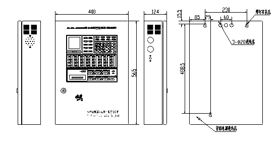 本控制器采取壁掛安裝,其底邊距地面高度不應小于1.5m,后箱體有3個安裝孔,可用M8的金屬膨脹螺栓固定在墻壁上,固定應牢固、端正,安裝在輕質墻上時應采取加固措施。靠近門軸的側面距離不應小于0.5m,正面操作距離不應小于1.2m。