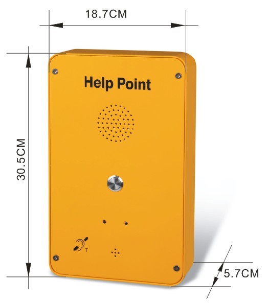 | 本電話機(jī)可與大部分模擬或數(shù)字電話程控交換機(jī)兼容。主要垂直安裝于人口密集的公共場所,如地鐵站臺(tái),海關(guān), 邊檢站,學(xué)校, 銀行,機(jī)場 等等,供殘疾人或行動(dòng)不便的人使用。