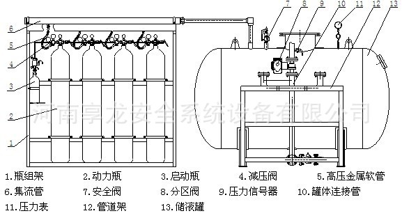 本裝置采用高效合成型水系泡沫滅火劑,可用于滅A,B類火災(zāi)及極性溶劑火災(zāi)。滅火劑滅火效率高,使用量小,無毒,并具有生物降解性,不污染環(huán)境,具有良好的阻燃和絕緣性能,對設(shè)備無影響。
