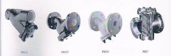 Fig33、Fig34、Fig36、Fig37Y型過濾器,法蘭連接,材質分別為球墨鑄鐵、鑄鐵、鑄鋼、不銹鋼。