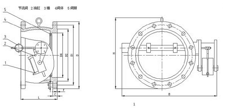 2、緩閉系統性能優良,不受管道中介質的影響,閥瓣先速關后緩閉,可防止破環性水錘。