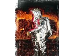 3.隔熱服面料結構為外層面料:100%玻璃纖維鍍鋁面料,內層襯里:鋁箔反射層,玻璃纖維絕熱層和白色玻璃纖維襯里。