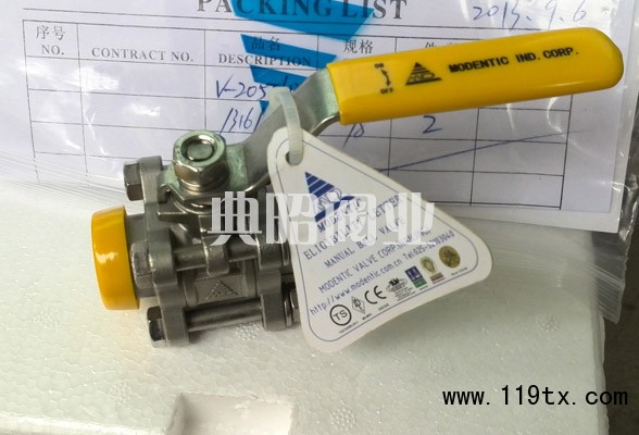 臺灣中鼎V-205T不銹鋼球閥,MD中鼎MD三片式球閥采用國外引進的先進工藝,結構合理、造型美觀。閥座采用彈性密封結構,密封可靠,啟閉輕松。閥桿采用倒密封的下裝式結構,閥腔異常升壓時,閥桿不會被沖出。廣泛用于食品、醫藥、化工、石油、電力、輕紡等行業的自動調節與遠程控制系統中。