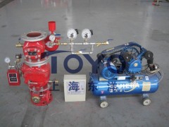 當有關人員接到火災報警控制器發出的報警信號或聽到水力警鈴聲響后,及時組織人員將火撲滅,閉式噴頭就不會打開噴頭,避免了水漬造成的損失。火災撲滅后,應將雨淋閥關閉,并排空管路中的水,使系統充氣,恢復伺應狀態。充氣壓力為0.03-0.05Mpa范圍內,充氣量不小于0.10m/min,以確保在30min內完成對將官網的充壓。由空氣維護裝置、預作用控制柜和空氣壓縮機組成連鎖裝置控制,對管網充氣的作用是監測系統管路的工作情況,管路及噴頭是否損壞和泄漏,當管路損壞或大的泄漏時,系統中氣壓低于0.01Mpa時,就會發出故障報警信號(詳見預作用滅火系統原理圖、預作用系統動作原理圖)。