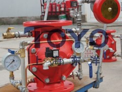 手動控制。發生火災時現場手動打開手動球閥開啟主閥滅火。主閥開啟后,壓力進入壓力開關和水力警鈴,水力警鈴發出聲音報警,壓力開關向控制中心發出信號開啟消防泵。