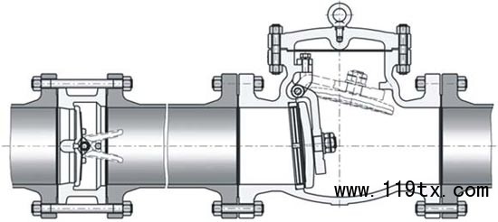 對夾雙瓣旋啟式止回閥與法蘭單瓣旋啟式止回閥的對比: